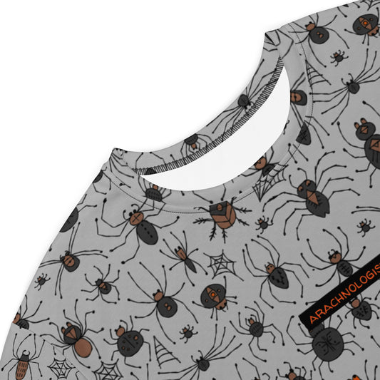 T-shirt dress grey color with funny Spiders. Personalised text - Arachnology
