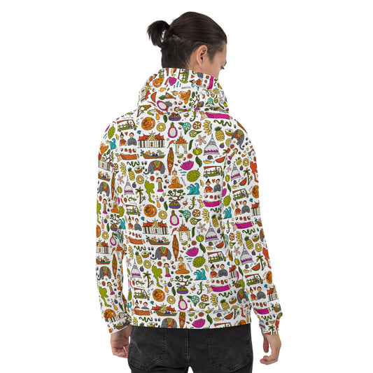 Unisex Hoodie white with colorful designer print for travelers - All about Thailand