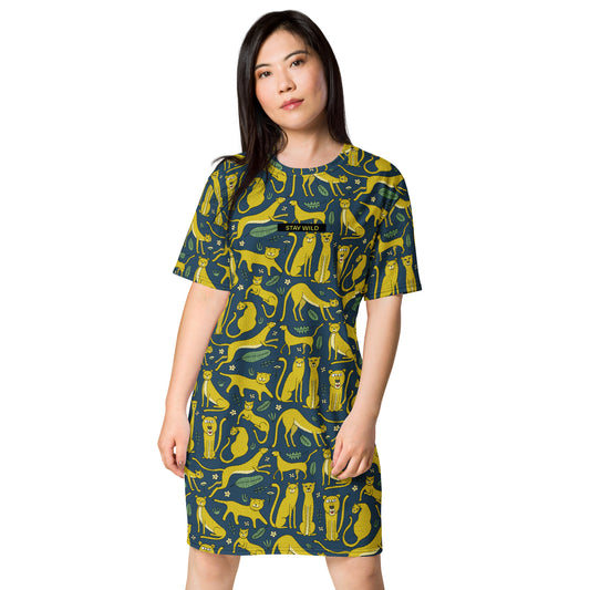 T-shirt dress dark blue color with funny yellow Leopards